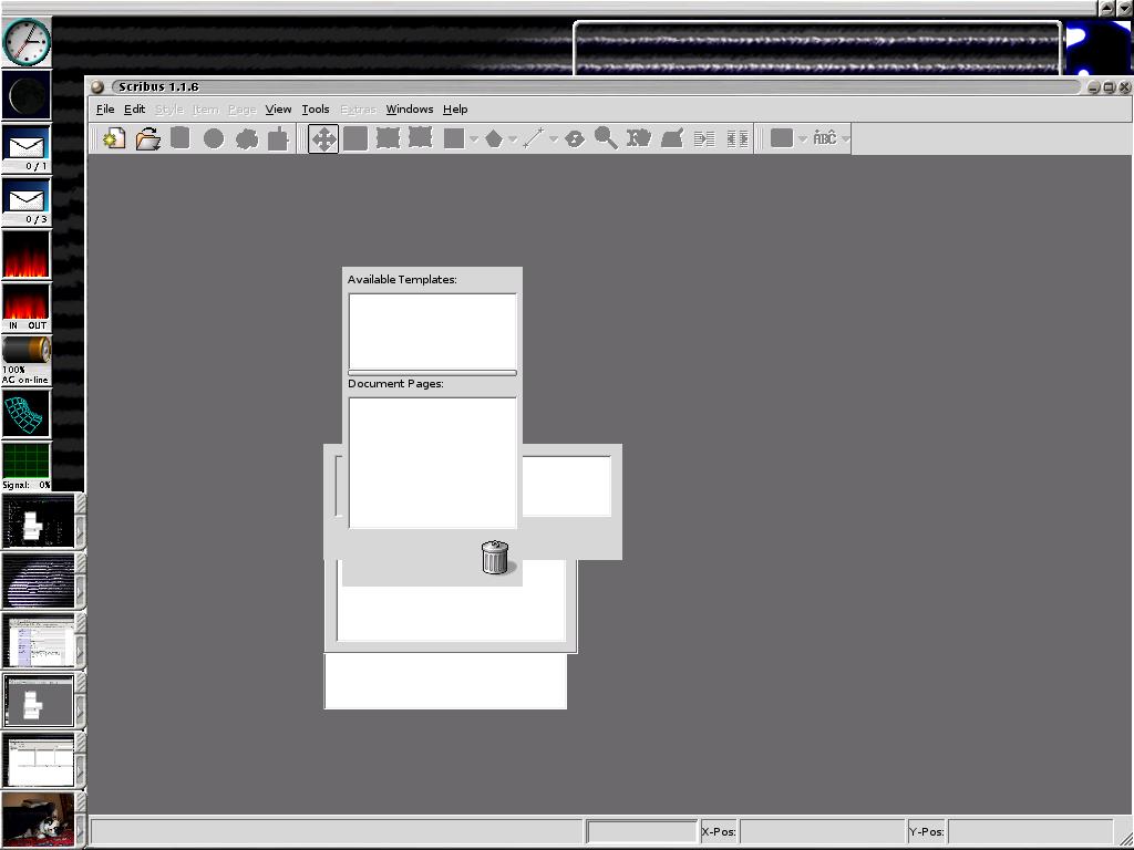 | Steps To Reproduce | Go into an X session running enlightenment as the WM, then start scribus. My .xsession runs enlightenment, one xterm, a handful of epplets (see screenshot) and the sonypi daemon, in case that is relevant. | ||||
