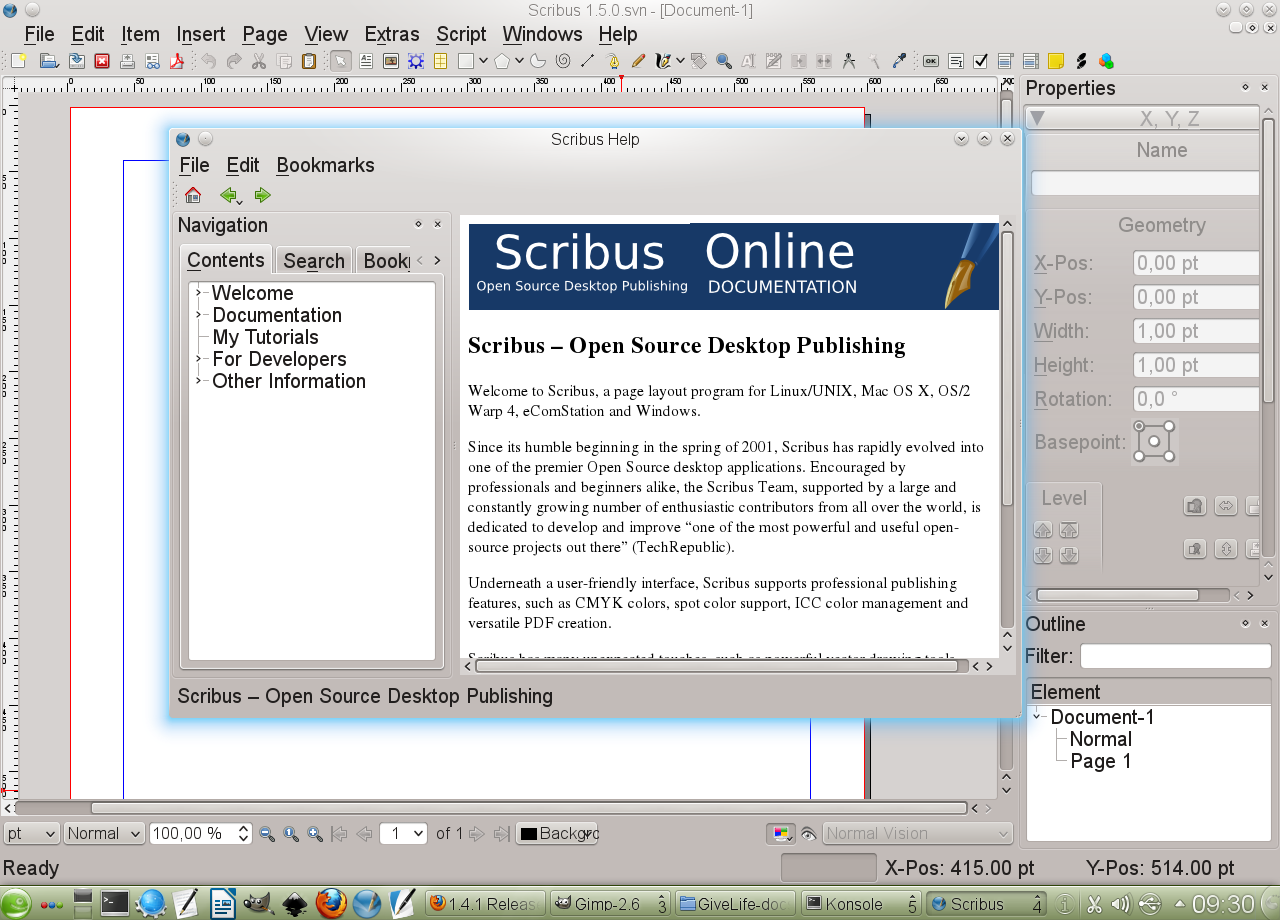 The font size is too small. That's why it's almost unreadable. I also have a question: If Scribus doesn't use QtWebkit, why is does it have to be detected by Cmake? -- QtWebkit Found OK ? Anyway, I still think that it should be possible to configure the display mode of the online help separately and change the font size like in a web browser, e.g. via Ctrl-+ or Ctrl--. |