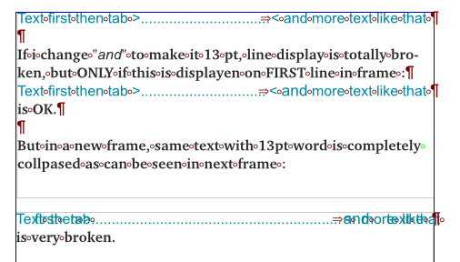 It looks like these problems arise when the right tab is "too close" to the right border of the frame. I upload SLA file and png image producing the "line collapsed" bug when one of the letter behing the tab is larger than others. |