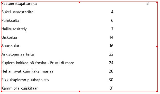 i'm sorry it takes long to understand but, well, that's how it is sometime when 2 non-english native speakers meet ! Now i dont understand how you use the word 'fit'. What does it mean to you when you say "the frame does not fit to the text" ? I could maybe understand it means that the frame is bigger than the text, but it doenst make much sense so can you explain ? And specifically what do you mean when you say "the frame does not fit to the text before the tab and the tab" ? etc |