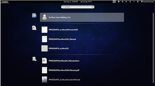 Kunda, on Overview mode from Gnome Shell, if Scribus is not installed, you can see Gnome Software icon on the left because of the available appdata file as seen on the screenshot. It is a feature from Gnome desktop environment. I don't have 1.4.x on my system but the appdata should work fine on that version. |