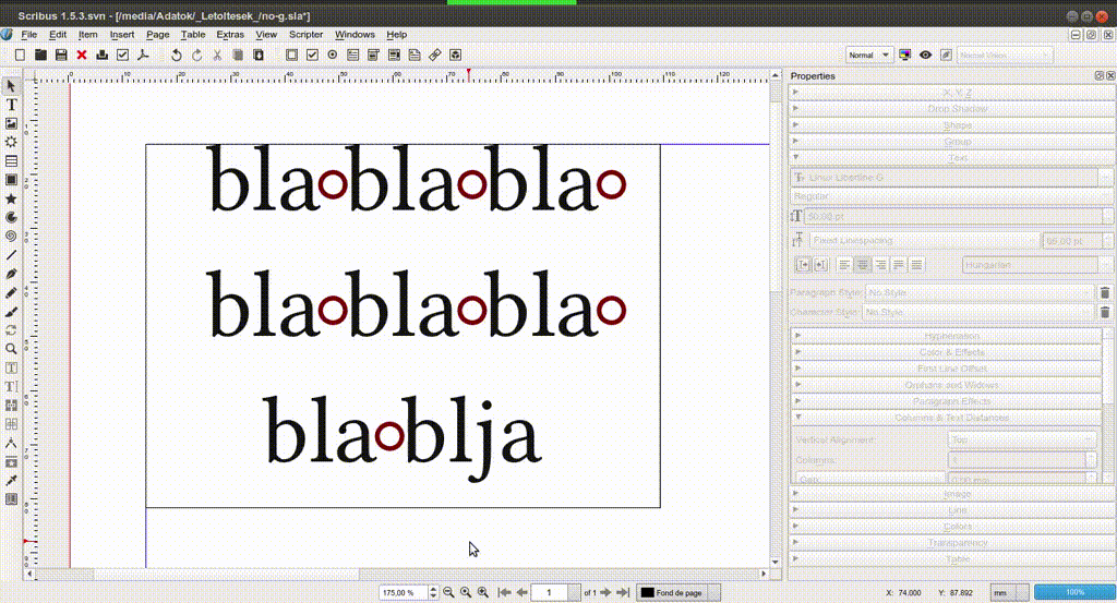 | Description | Environment: Linux Mint 16 "Petra" Version: Scribus 1.5.0 (https://launchpad.net/~scribus/+archive/ppa) Language: HU "Fixed Linespacing" and "Align Baseline". Incorrectly aligns the last line, if use "Adjust Frame Height to Text" function. Link this video: https://www.dropbox.com/s/3nljdgdrzgy810b/example.avi | ||||