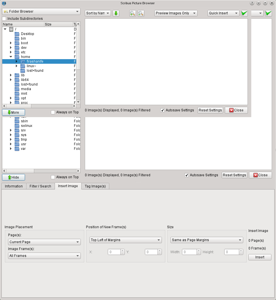 | Steps To Reproduce | 0) Create a new document 1) Extras > Picture Browser... 2) Increase the size of the window 3) Click on More/Hide button The size of the window will be reset to the initial one. KDE: if in Step 2 the window is set to full screen there will be a bad display of the Picture Browser as if it could not resize itself. | ||||