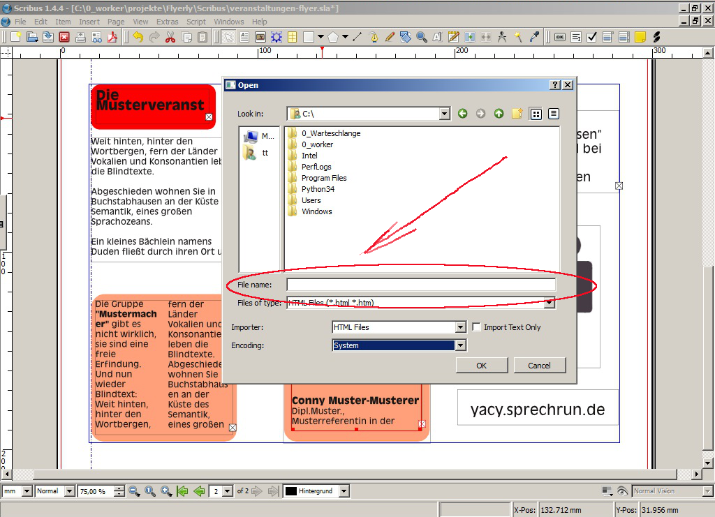 You are asking to have Scribus fetch it locally or remotely over the web ? After that 'append' the text of a .html to in to a text box ? By append you mean add all the text from an .html to the end of where ever you're importing it ? |