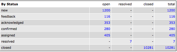 Ale, you are right. I misunderstood what 'feedback' status means. I just read the http://www.mantisbt.org/manual/admin.lifecycle.status.html page again. I think I was confused by how the statuses are displayed on the Scribus Mantis 'Summary' page (http://bugs.scribus.net/summary_page.php). In the screenshot you can see the order where 'Feedback' lives (right after 'New').