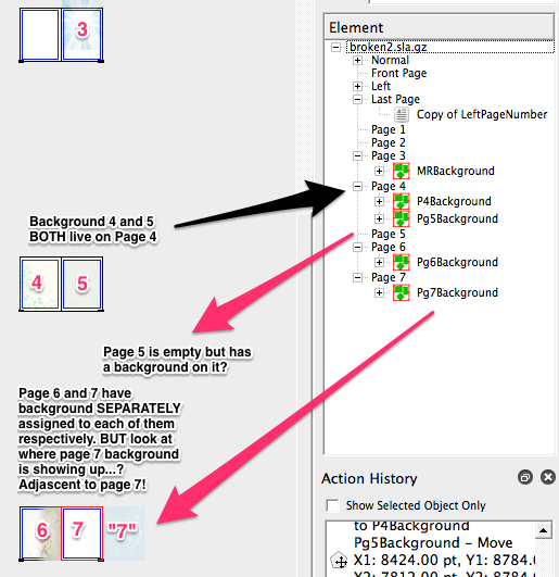 Peter, Can you do another screenshot that also includes the outline menu The issues is that Scribus here is for some reason saving the background images that should be on separate pages, all on one page (see my screenshot for pages 4 & 5). It also is saving the position of background images way off the side of the intended page (see page 7 in my screenshot). Unfortunately, I do not know how to reproduce this. |