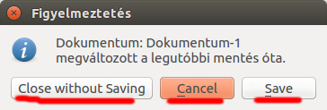 | Steps To Reproduce | A) 1. Download and install Scribus 1.5.0 on Windows 2. Start Scribus with Hungarian locale. 3. Create a new document 4. Apply a change 5. Go to: File > Close (Fájl > Bezárás) B) 1. Download and install Scribus 1.5.0 on Windows 2. Start Scribus with Hungarian locale. 3. Create a new document 4. Go to: File > Edit (Fájl > Szerkesztés) C) 1. Start Scribus 1.5.1 on Ubuntu with Hungarian locale. 3. Create a new document 4. Apply a change 5. Go to: File > Close (Fájl > Bezárás) | ||||