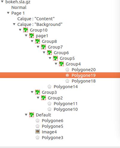 | Description | Bokeh document template should not be proposed or not as is. It uses 2 layers but one of them is empty. When then document is opened, the active layer is empty and a newbe easily believes that the document cant be edited. Beside, in the background layer, it uses polygons for data input instead of proposing text frames... Worst is : it uses a weird complex document structure with 6 levels of embeded groups !!!!!! See screenshot ot outline window. | ||||