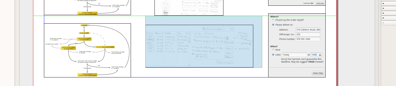 | Description | Let me start by saying that the new "snapping between objects" feature present in the 1.5 series is *awesome*. There is one thing that annoys me with it though: when you have a bunch of objects (ex: images) sitting all around the canvas, whenever you're resizing an image frame it tries to snap to everything all over the place all the time, which is okay, except that I oftentimes end up making small errors because I snapped to the wrong edge (ie: to another object somewhere on the grid). The primary reason is that the dynamic snapping "guidelines" span the entire width or height of the canvas/screen, instead of just showing me what object it is snapping to. | ||||