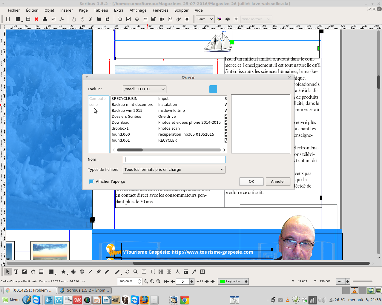 | Description | Version de Scribus 1.5.2 17 Mai 2016 Identifiant de compilation : C--T-F-C1.14.6-64bit Ghostscript version 9.18 - All partitions mounted - Already install again Scribus Problem: Suddenly Scribus 1.5.2 do not see my files. I can not get images. Scribus 1.4.6 is ok. Files listed in the "look in" are not active. Solved: Problem occur with the Breeze theme only | ||||
