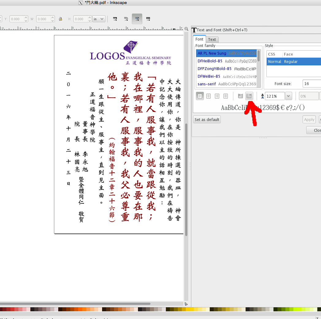 | Description | Dear Friend, In Chinese, Japanese and Korean, the vertical text layout is very important, is it possible to have this feature, attachment is the screenshot showed inkscape support vertical text. Thank you very much! | ||||