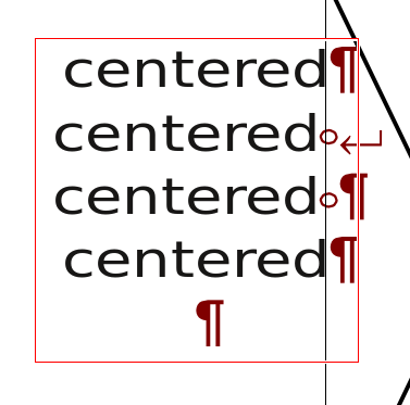 | Description | The last line of a centred block of text in certain configurations appears to depend on the trailing whitespace in ways that are not easy to predict. | ||||