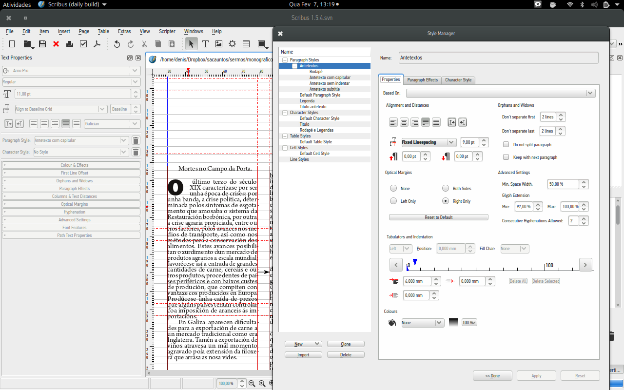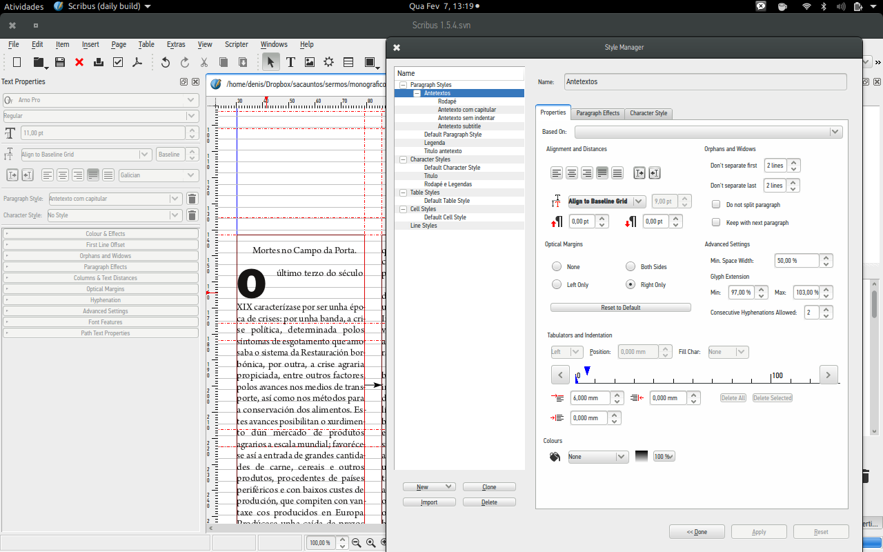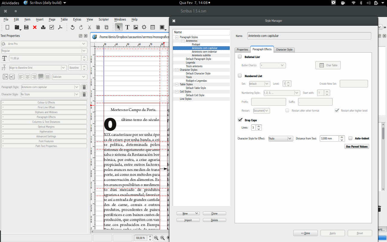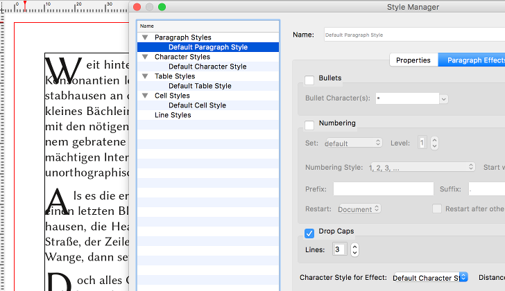 | Description | in scribus 1.5.2 and 1.5.3svn drop caps don't move the text of the second (and following) line to the right – the capital letter overlaps the text. (see screenshot…) Edit: "just made some more tests – it looks as the problem occurs only when the text is aligned to the baseline grid. " | ||||
