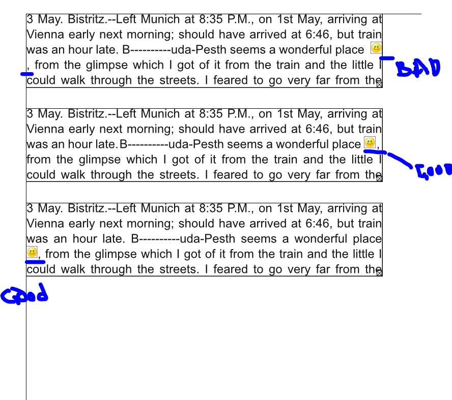 | Description | The problem is that I have a images (like smileys) in text. Some smileys are followed by dot. Sometimes scribus moves dot to next line in order to keep text in line. Any way to prevent this behavior and make dot "attached" to image? I mean the same way it works with letters. http://fastpic.ru/view/89/2017/0218/1e441fa5cc4096969bc564792f6c50ea.jpg.html Manual tracking for each line is impossible. Some programmable solution needed. Maybe there any XML modification can help? My idea is to add "non-break before" and "non-break after" properties for Inline images. | ||||