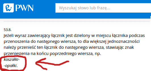 | Description | Hyphenation of double words at the connector should be doubled in Polish language. | ||||