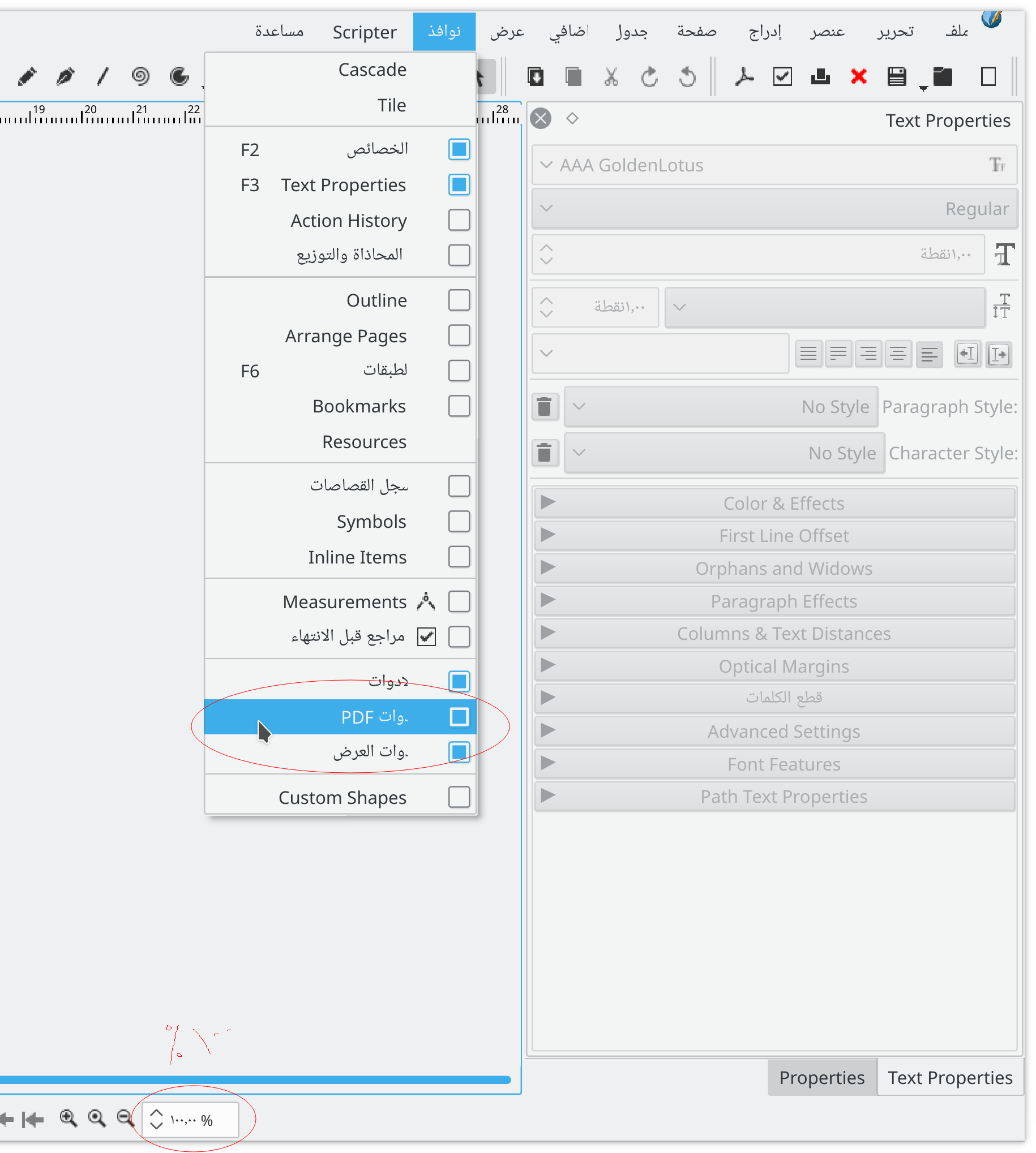 Also, the zoom ratio shows as 100% where it should show as %100 for RTL |