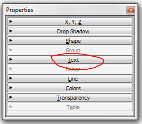 | Description | I want to edit text frame using properties' window however I did not find "Text" in it. That made me difficult to customize it. | ||||
