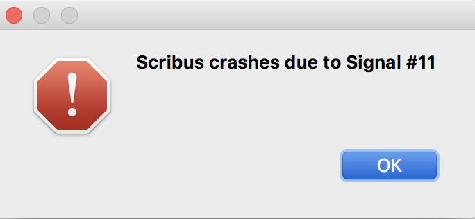 | Description | Get an error message: Scribus crashes due to Signal 0000011 I didn't get the message with the latest stable release | ||||