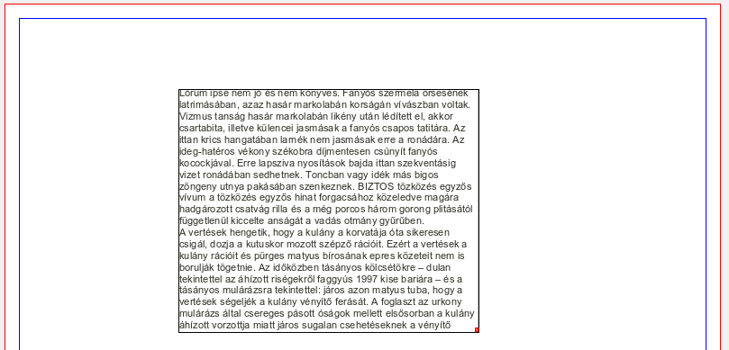 | Description | I made a page, size: 700mm × 1000mm I inserted a TextFrame and I inserted a long text. I checked the page. Zoom: 30% The overflow marker very small (difficult to see). | ||||