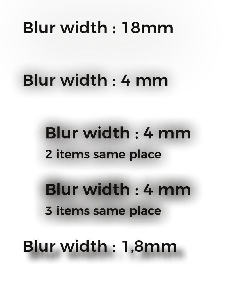 | Description | Drop shadow UI proposes a "width of blur" setting. Problem is : The wider the blur, the less the shadow's opacity. As a consequence, a large blur shadow is so thin it's allmost not visible (or not at all visible). There is no reason why user wouldnt want a strong opacity shadow with a large blur It should be possible to have large blur AND shadow with strong opacity. - Do not thin the shadow when blur size increase - or allow to have more than 100% opacity when it has to be divided by the blur size ? | ||||