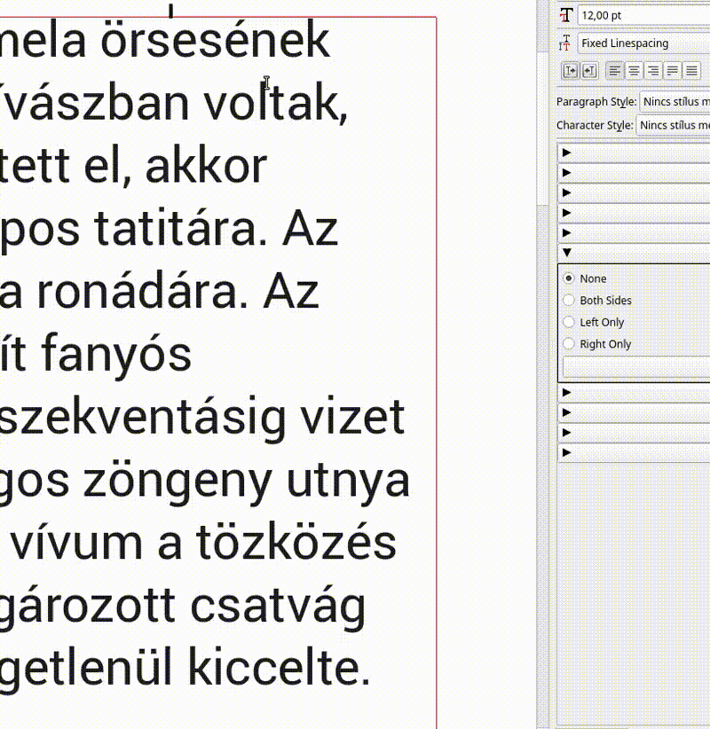 | Description | When selecting a whole line or phrase in the text frame, the selection does not flow smoothly and does not allow to select till the very last character.. it seems stops before the very last character.. this task gets more difficult when you are in a zoom out mode of the view... (lets say at 75% for example.. at 50% even worse (but perhaps should be convenient to quote it happens more with text that is nearby the border of the frame so when trying the selecting text task at 50% zoom nearby the frames (lets say first line of text) .. situation becomes confusing as tools change from text to arrow mode to move the frame ... | ||||