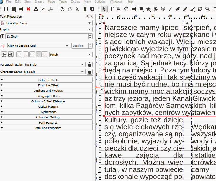 Ok, I see your point and this is also not a problem to clean this up using "No Style", but I have had re-formatted only first paragraph directly on text not on frame after formatting with drop caps to get part of text from linked frames formatted. Problem is, that after reformatting text with other paragraph style without drop-caps, character style is retained from previous formatting containing drop-caps style. Drop caps character style is applied to first paragraph letters directly but it it not cleaned when paragraph style is not containing any drop caps style. You have to remember to clean it using "No style" and this way you can loose all formatting you have made on text. It should work like this: - drop caps character style is applied when paragraph style contain this - ok this works - drop caps character style is cleaned ("No style" applied) when paragraph style doesn't contain it - this is missing However I can see limitation of this solution: what to do when in the meantime you have applied something like "italics" for citation or other style directly to text? Working on paragraph styles without any drop-caps style would lead to cleaning character styles applied to text. Maybe checking if there's style applied to first characters only would work or comparing first and second letter? Not sure. This leads me to conclusion that applying character style directly to text may not always work and this character style should be applied "on the fly". Actually I use style for drop caps only due to this limitation: https://bugs.scribus.net/view.php?id=7006#c45447 Maybe it's worth to add this as related. |