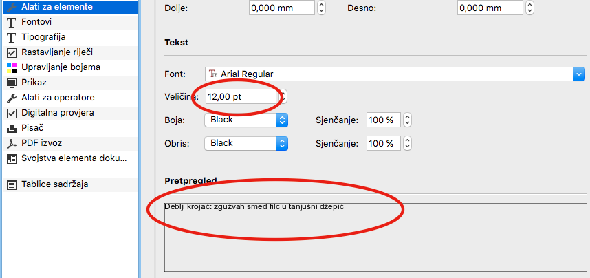 | Description | Preferences > Item Tools > Preview - Set the standard fontsize for the preview to 30pt. This pointsize allows to actually see the character of the previewed typeface. - Give the textfield some padding, to make uppercase diacritis visible, and to give the text some "air". See screenshot | ||||