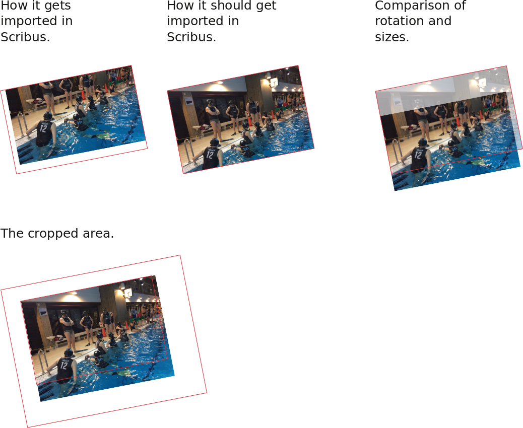 | Description | Importing a PDF with rotated images causes the images to be incorrectly scaled and cropped. I have not been able to divine any particular pattern or formula, but see the attached image for how it looks. | ||||