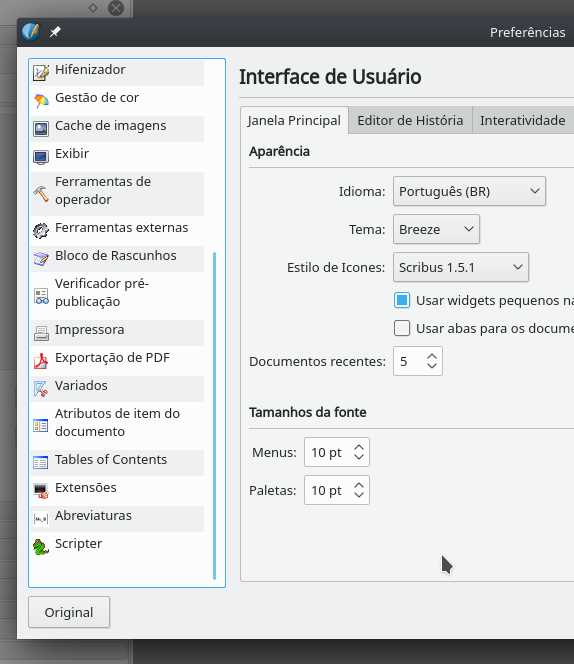 | Description | The Preferences dialog contains a list of settings on the left side and their respective settings on the right. The list on the left should be larger by default so that localized text does not break or fail to show fully when using a not-so-compact theme like Breeze or Oxygen. Strings do not break under Fusion or Windows, Oxygen only has Table of Contents broken, Breeze has both Table of Contents and Image Cache. See attachments. Note how just by resizing the window a bit and consequently widening the list, both Breeze and Oxygen render correctly. | ||||