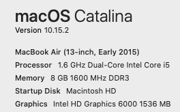 | Additional Information | macOS, MacBook Air, OS version: 10.15.2 8 gig ram, | ||||