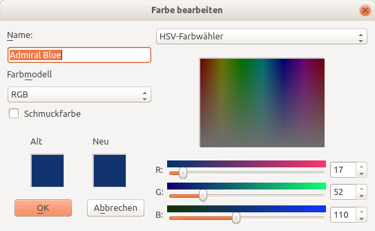 | Steps To Reproduce | 1. Open the attached document. 2. Verify color management is turned off. 3. Verify color 'Admiral Blue' is set to RGB 17-52-110 4. Verify the box in the document uses this color. 5. Export the only page in this document to SVG. 6. Open this SVG in a text editor to view the color actually exported. Expected outcome: color in SVG set to #11346e (17 = 0x11, 52 = 0x34, 110 = 0x6e) Actual outcome: SVG containing this: <path style="fill:#10346e; fill-rule:eveno... | ||||