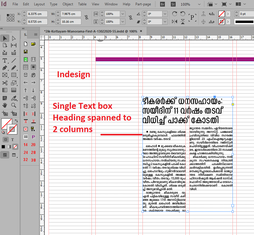 Actually both are not same. One is having grouping of text boxes which will cause some work for user if we want to edit anything in Heading or content matter. But in Indesign there is no such extra work. Yes Indesign uses Span column in paragraph style. Attached a screen shot of the same |