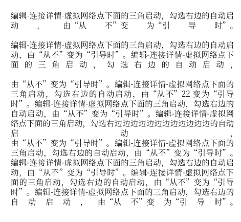 <ITEXT CH="由“从不”变为“引导时”。编辑-连接详情-虚拟网络点下面的三角启动,勾选右边的自动启动,由“从不”22变为“引导时”。编辑-连接详情-虚拟网络点下面的三角启动,勾选右边的自动启动,由“从不”变为“引导时”。编辑-连接详情-虚拟网络点下面的三角启动,勾选右边边边边边边边边边边边边的自动启动,"/>