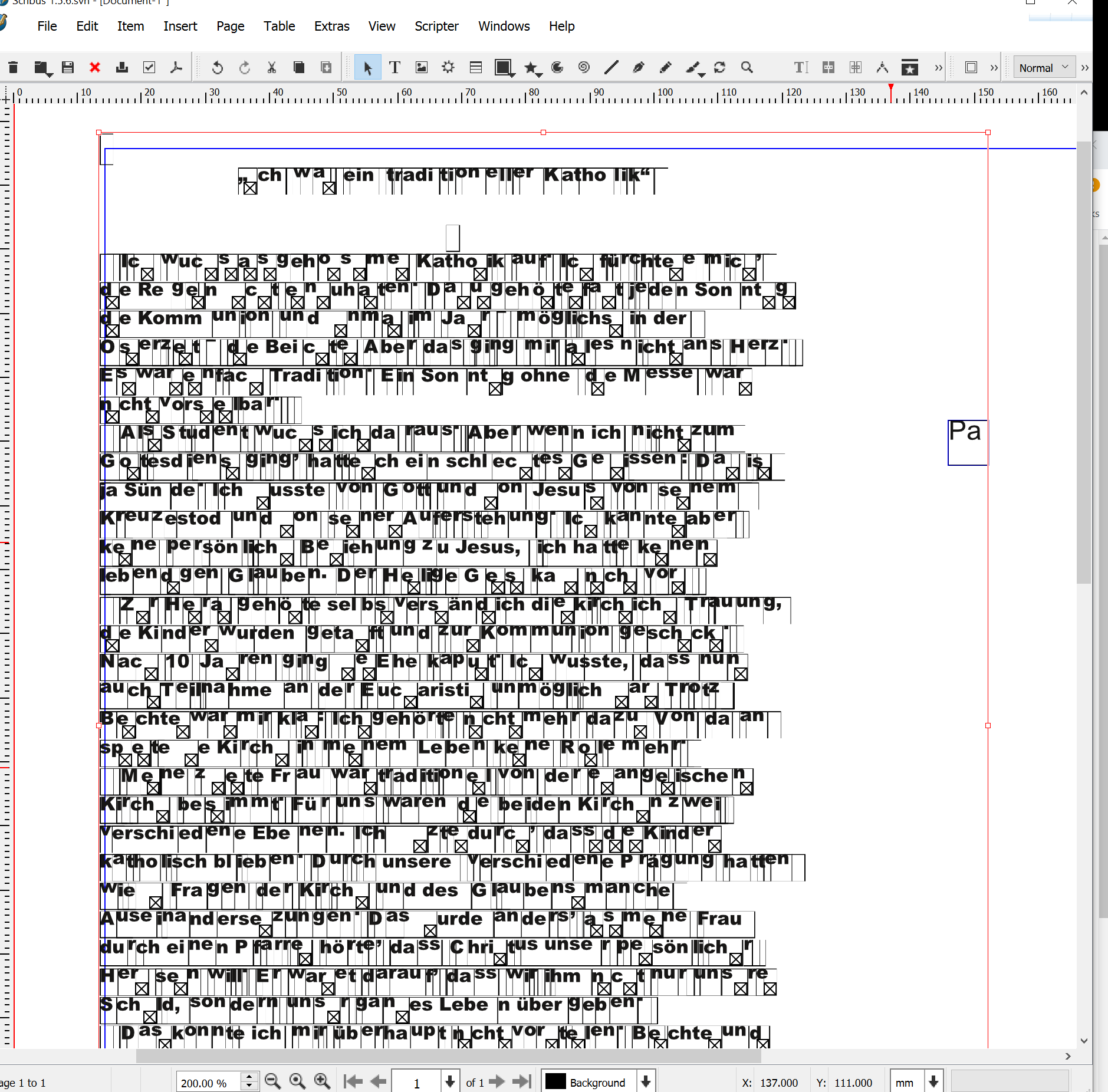 I see one last major issue with the last patch you uploaded: when you open (with file > open) a PDF containing multiple pages, after first page text frames are not created at correct position. In fact they seem to be placed before first page. |