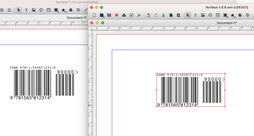 | Description | when i try to insert an ISBN code, there is no readable text. the checkbox seems to work in the barcode editor. the preview shows the text. the inserted code in the layout shows the free space for the text, but the text is missing. | ||||