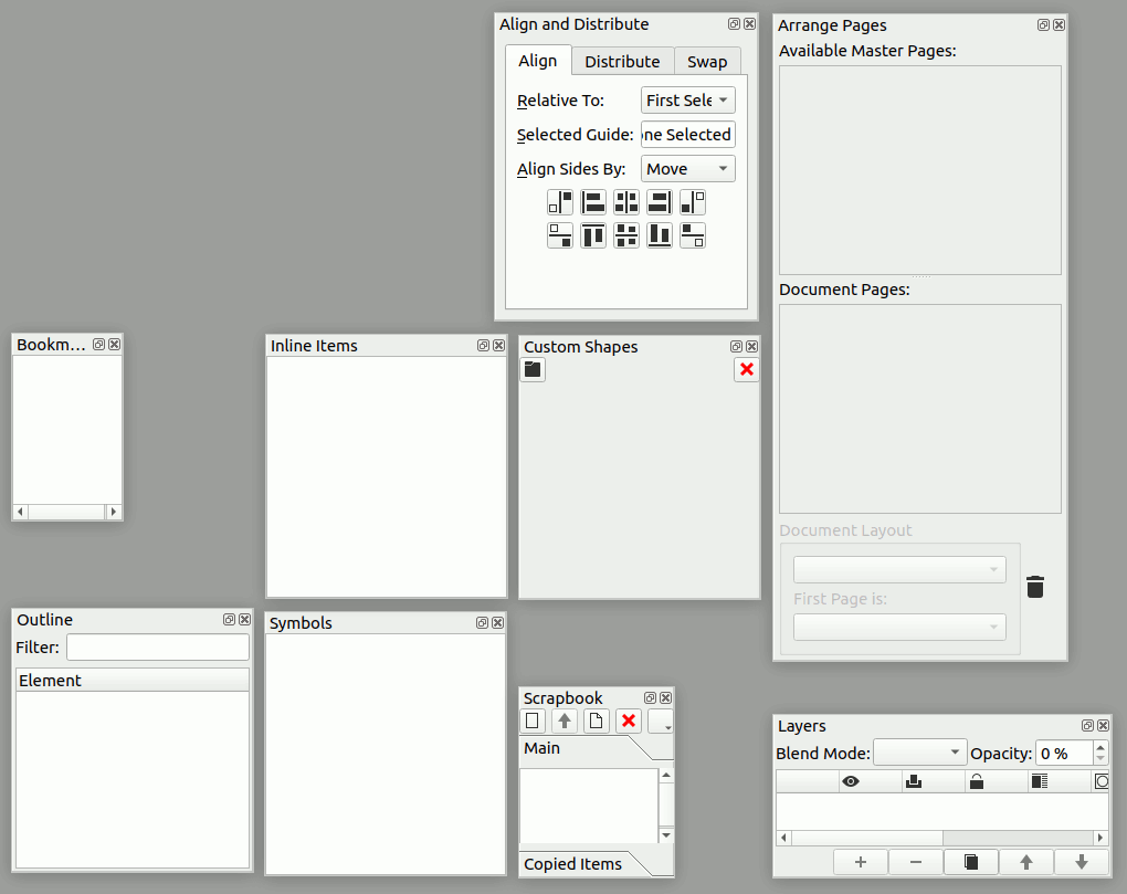 | Description | This patch unifies the minimum size of dock palettes (exept properties palette). As I see the general minimal size is 220px width and 240px height. Currently the scrapbook and bookmarks palettes do not follow this minimal sizes and the layers and the pages panels have custom minimum height. In this patch I propose to use the same minimal height and width when possible: - Same minimal width and height: - Bookmarks - Inline items - Custom shapes - Outline - Symbols - Scrapbook - Unified min. height: Layers - Unified min. width: Arrange pages (Master pages) - Custom min. height and width: Align and distribute I think, this patch also fixes 0014472. Please review the patch. Thanks. | ||||