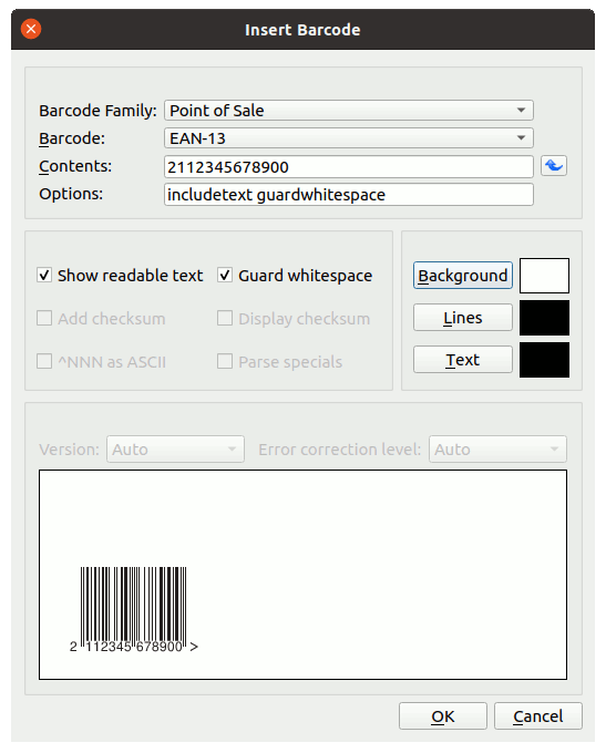 DescriptionI propose 2 competing patches for Barcode Generator dialog: