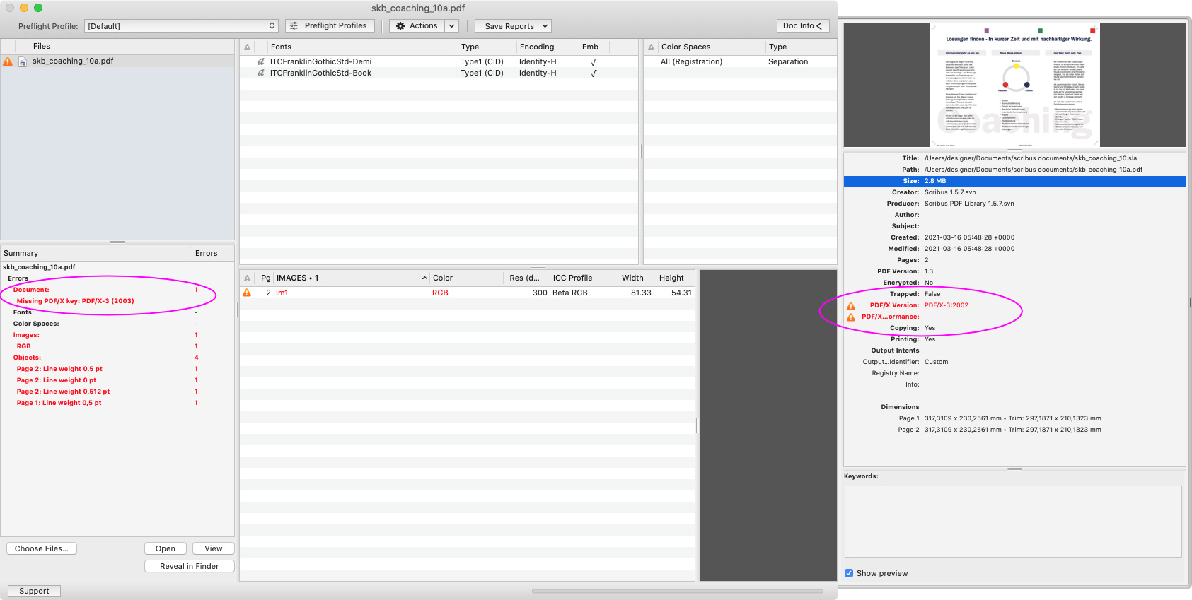 Btw the message of PDF Checkpoint shows itself their analysis is buggy as it mentions PDF/X-3:2003 while we export to the older PDF/X-3:2002. PDF/X-3:2003 uses PDF 1.4 as a base while PDF/X-3:2002 is based on PDF 1.3. |