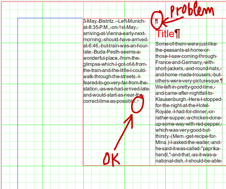 picture 2 and 3 : the two posibilities to force change column (end or start of a paragraph)