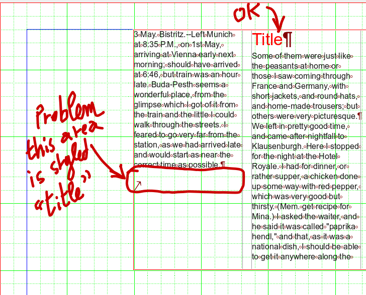 DescriptionWhen a text inside a styled paragraph is overflowing a frame or column, the text move to another column or frame. Normal.