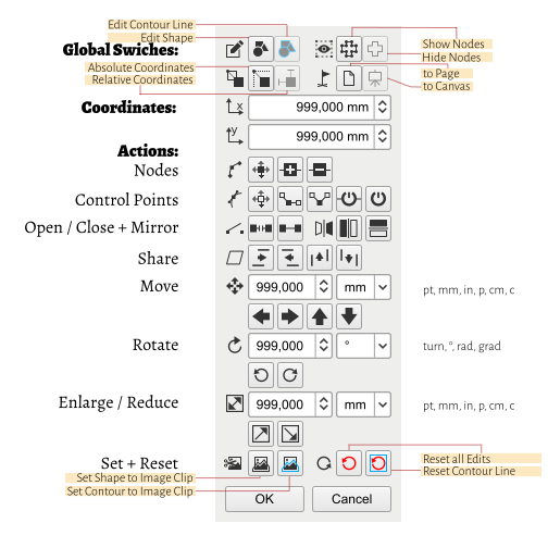 I have a few suggestions: - group the coordinates, move, rotate and enlarge/reduce sections (i do not mean in a group box here) - the unit comboboxes are imo not really useful as our spin boxes already support working with different units (ie you can type "12 pt" while current unit is mm" - by doing so, at least for the move and rotate sections, you can move the 2 buttons which are placed below next to spinboxes |