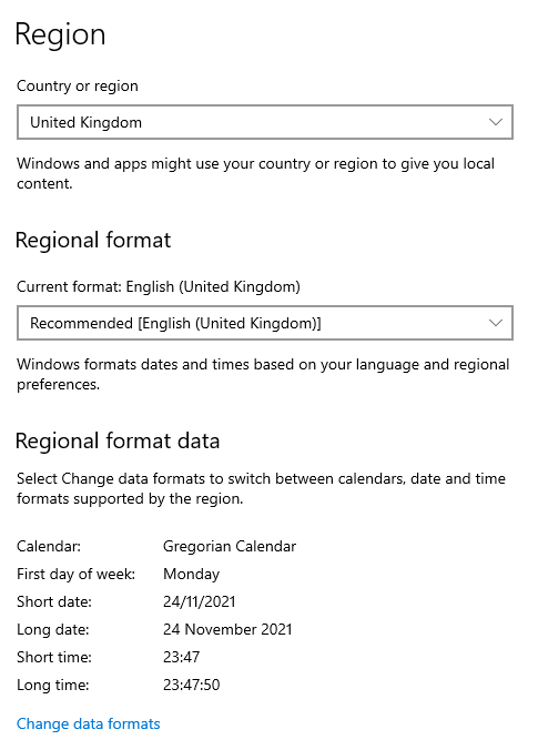 Interesting - thank you. These are my date and language settings, so not sure that the US format is coming from this machine. Could it be a fallback date format somewhere in the code? Or does win10 hide more formatting options elsewhere? Also attached is a screenshot of a doc I just created with 'page information' turned on, and a screenshot of the 'user interface' settings in Scribus (now updated to 1.5.7) |