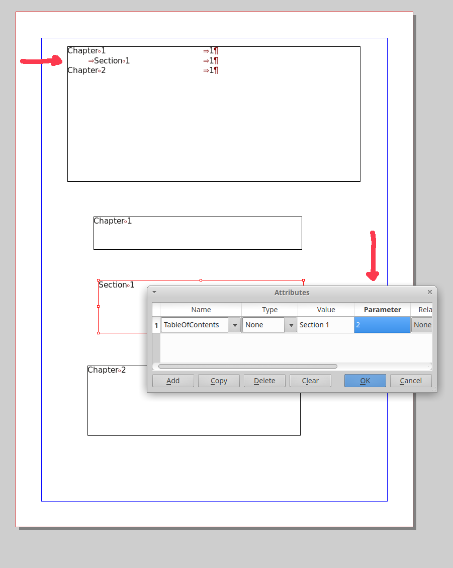 Multilevel TOC would be nice. Doing this with a TAB though is (1)cumbersome and (2) unintuitive. As for how I'd implement the feature - which is probably a lot of work - I'd add a checkbox to the paragraph styles "Use in TOC". This should give a sub-style (maybe another Tab in the Styles-Section dubbed ToC-Style; that has all the style-features a Paragraph allows). Then on generating the ToC, the ToC-Substyle would be used for the ToC. An easier way would be to create another Paragraph-Style automatically when that check-box is set, and name it ToC-{ParagraphName}. Which would probably be a lot easier to implement. This should give an intuitive way of doing the multilevel ToC. The more hidden ToC-Approach, that would build on what's currently there, would be to add a fixed Attribute of "ToC-Style". It's probably even quicker to implement, but, as others have already said, more prone to errors. |