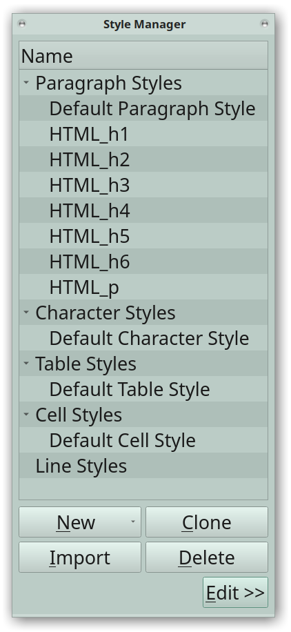 | Description | Style Manager does not show 'imported' Paragraph Styles with script function insertHtmlText Try the script that imports text from HTML file [code] margins = ( 10 , 10 , 10 , 10 ) newDocument( PAPER_A3_MM , margins , LANDSCAPE , 1 , UNIT_MM , NOFACINGPAGES , FIRSTPAGERIGHT , 1 ) createText( x , y , width , height , "Text1" ) insertHtmlText("text.html", "Text1") [/code] Open Style Manager - only Default Paragraph Style is shown. [img]https://i.ibb.co/kMzBFrW/style-manager-1.png[/img] ... Click on Edit, and you can see other imported Paragraph Styles like HTML_h1, HTML_h2, ... HTML_h6, HTML_p. [img]https://i.ibb.co/h1gCkyy/style-manager-2.png[/img] ... Click Done and - voila - all that Paragraph Styles are now visible. [img]https://i.ibb.co/0KW4vBN/style-manager-3.png[/img] ... When you manually import HTML (in new created document) with Scribus GUI, than all Paragraph Styles are immediately visible. Tested with Scribus 1.7.0.svn and Scribus 1.5.8. on Fedora 38. PS: I added lines into script to print Paragraph Styles, and all styles are shown, but not in Style Manager. [code] print() print("### getParagraphStyles ###") print(getParagraphStyles()) print() [/code] Script shows Paragraph Styles: [code] ### getParagraphStyles ### ['Default Paragraph Style', 'HTML_p', 'HTML_h1', 'HTML_h2', 'HTML_h3', 'HTML_h4', 'HTML_h5', 'HTML_h6'] [/code] | ||||