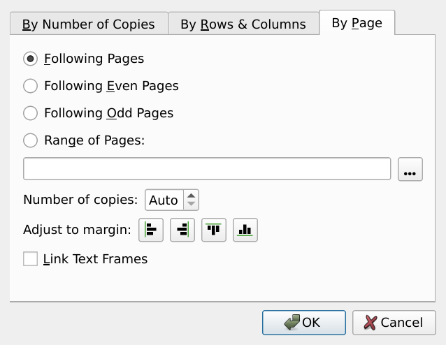 | Description | following up my comment in the forums https://forums.scribus.net/index.php/topic,5002.msg22993.html#msg22993 i suggest that multiple duplicate by page should allow the user to adjust the position according to: - one of left / right margin - one of top / right margin | ||||