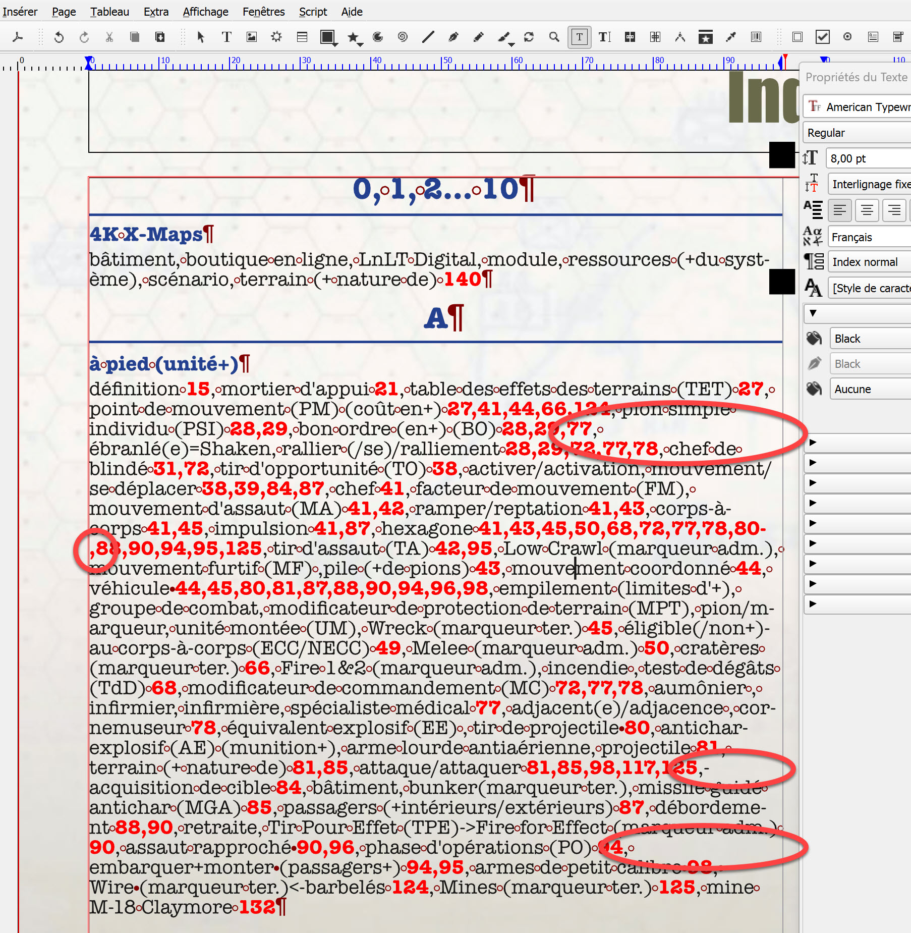 @Frenchwolfie, maybe this is not a bug. Try to add a zero with space after "ébranlé(e)=". Insert > Spaces and Breaks > Zero With Space. I suggest to add this character after every red page number too. |
