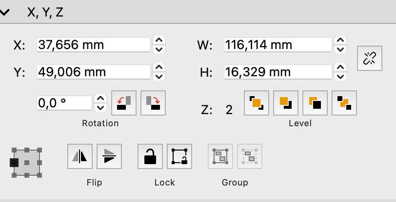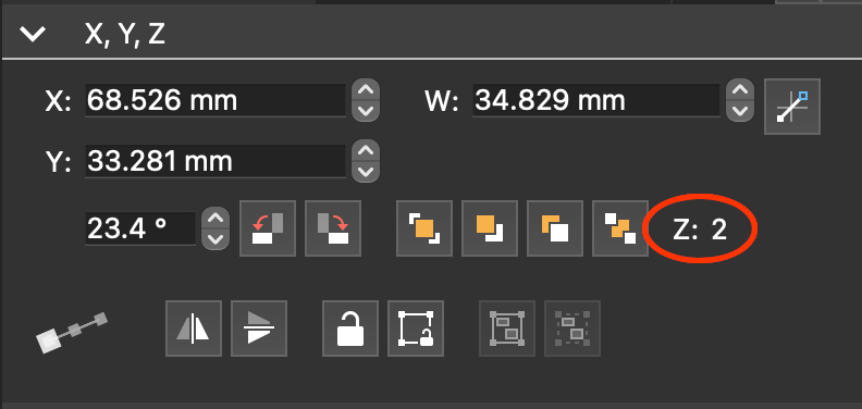 The reason the "Z" label is in front of the line is because it has meaning for rotation and level. You can rotate an object around the Z axis or move it up or down on the Z axis. But it doesn't seem to have any real value in the UI. I'm okay if it is removed or to put it in front of the level count as Utnik proposed. I could imagine adding a new rotation/angle icon in front of the rotation input field. Currently, there is no "Z" label in the image properties in front of the rotation input field. #inconsistent |