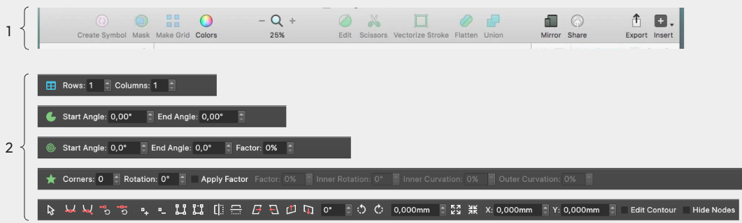 >> personally, i'm for simply removing all the widgets concerning the scaling and rotation. Yes, or since we have them, we can hide them in a menu or make it less prominent. >> if we want absolute coordinates, we only need the ones relative to the axis origins, the same that we otherwise get for the items. (which is currently not a choice) At the moment I merged 3 options in a dropdown button (canvas, page, item). Perhaps only ruler and item origin? >> no idea why we have those buttons here. (and how they got that name...) We could but them in the shape section, next to the shape selection >> if i understood correctly, you're wondering if the content palette should actively be used for editing the nodes. My comment refers to if we would remove the coordinate inputs from the node editing palette >> in the long term, i think i prefer to have the context aware toolbar you were proposing. Yes, it is better to keep the related things together in a toolbar or other kind of window. |