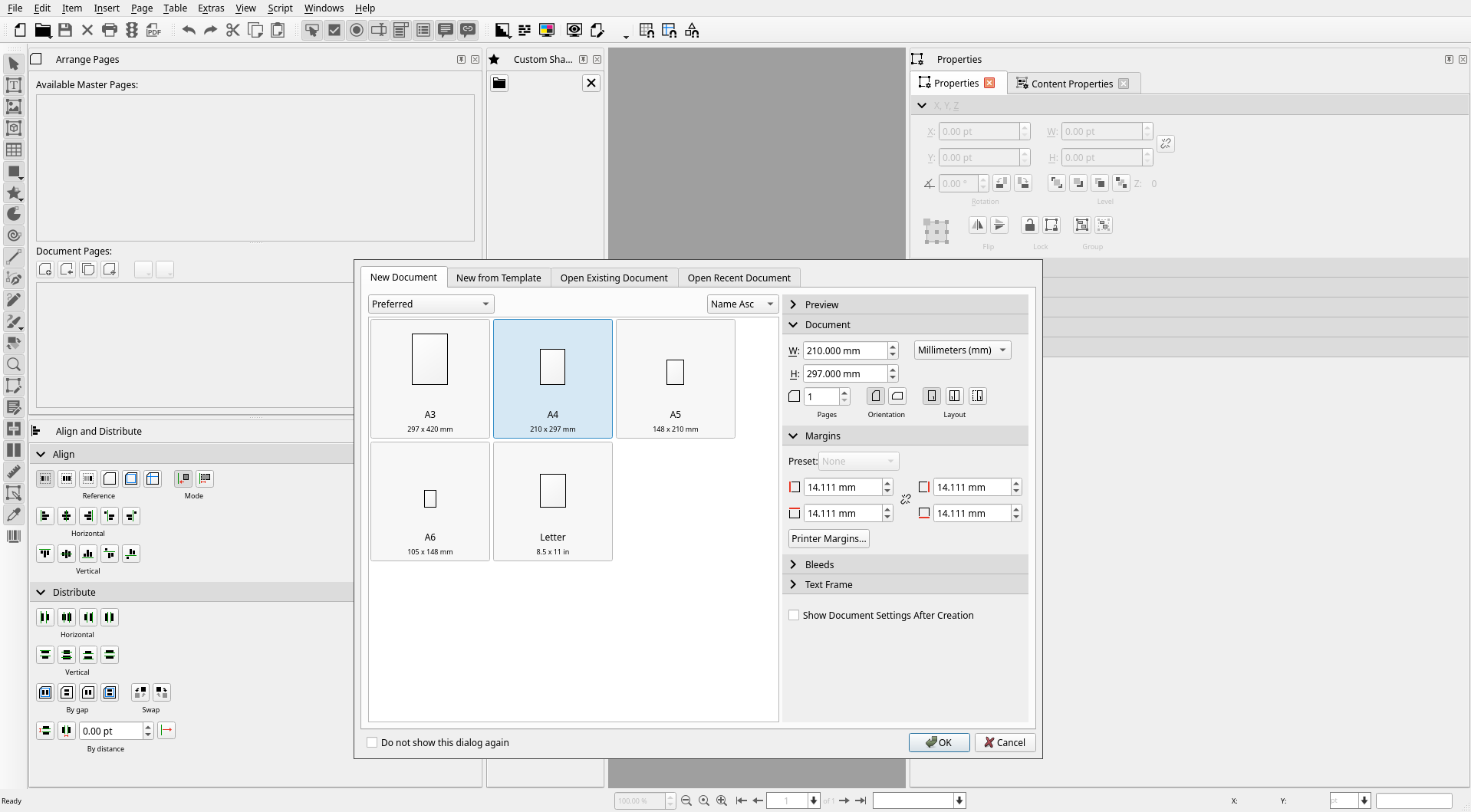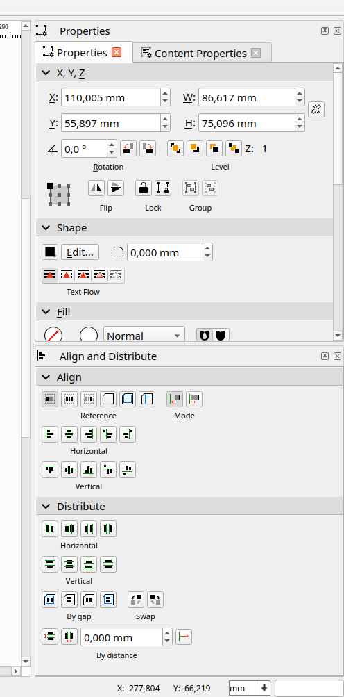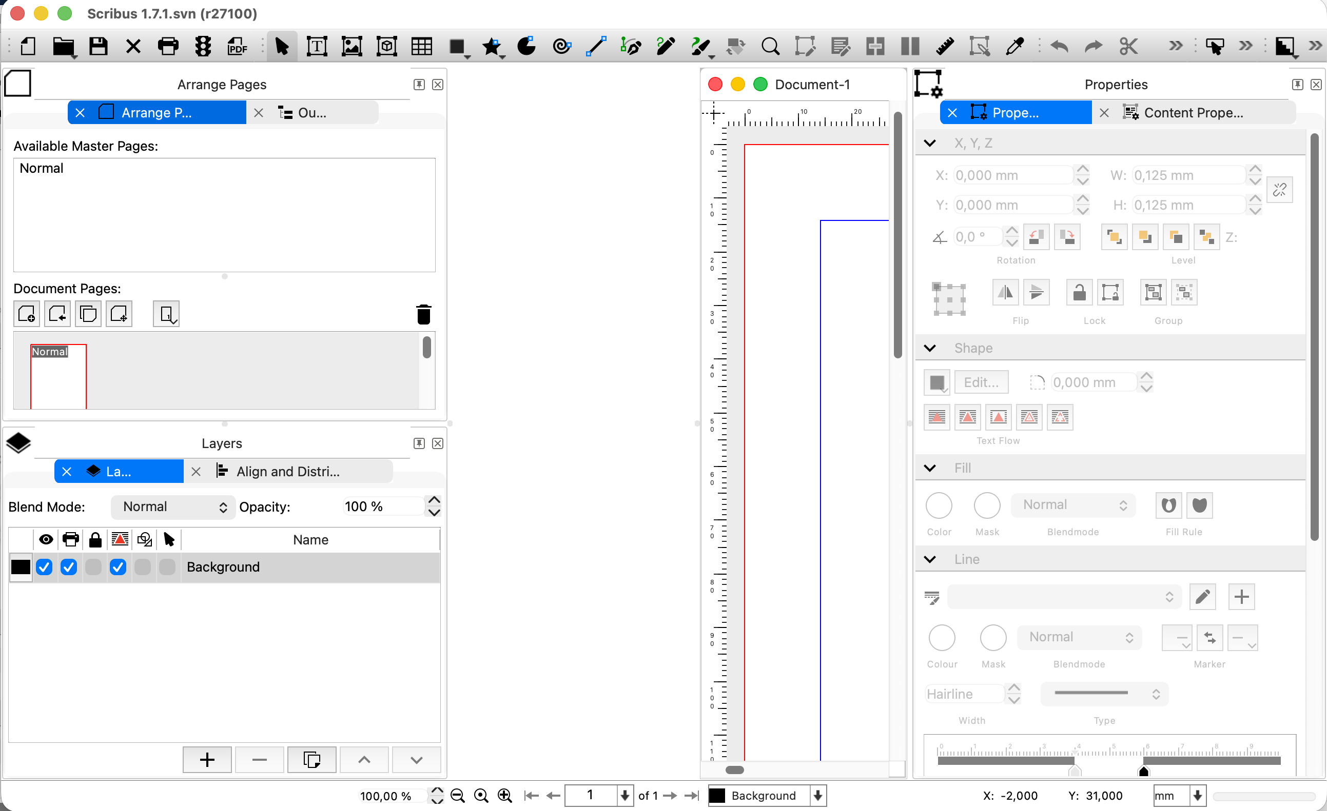 On the one side, I think I prefer having left aligned tabs. If I'm correct, on Mac there are widgets that are centered, but on my system and in "my" Scribus everything is left aligned. Removing the setStyle() mentioned above indeed shows the tabs as icons only, like in your screenshots. Personally, I would suggest adding two options for hiding the title bar and displaying the tabs as icons, when there are multiple tabs in a panel. But, as far as I understand it, the pin and close buttons are only available in the title bar... This might be an issue if the user hides the title bar. Not sure what KDDock provides there. And the user On the other side, I don't really like how the existing option "Show labels of inactive palette tabs" works, when it's not enabled. Too much "Unruhe" for little to none (or even negative) gain. (If I need more information about the tab, it's when I'm selecting one, among the inactive ones, I normally recognize the active one by its content...) I would suggest to remove that option. Two cosmetics things: - When first starting Scribus (with new configs), the "Custom Shapes" window is attached to the right of the of the left stack of panels. Way too slim. I'm not sure that it should be shown at all by default. And it should probably not be attached (there) by default. - The View toolbar gets "automatically" reactivated when restarting Scribus. (I hide it, restart Scribus, it's there again) All this having been said, working with this tab system feels smooth, once I got used to the incredible amount of choices for the docking areas : - ) Good work! |