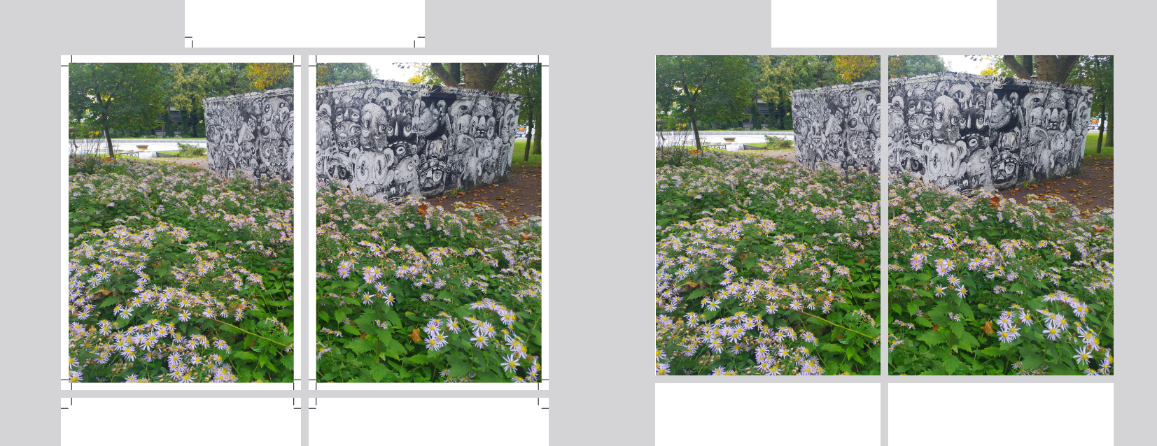 | Description | I've created document with - facing pages, - bleeds of 3 mm on each side but the inner one - a picture that covers a double page Exporting it to PDF seems to be Ok, but -- when adding the crop marks -- then there is no way to get the inner part to be displayed in a "nice way". Question: is this something the print shop should easily manage or should Scribus make the inner crop marks optional? | ||||